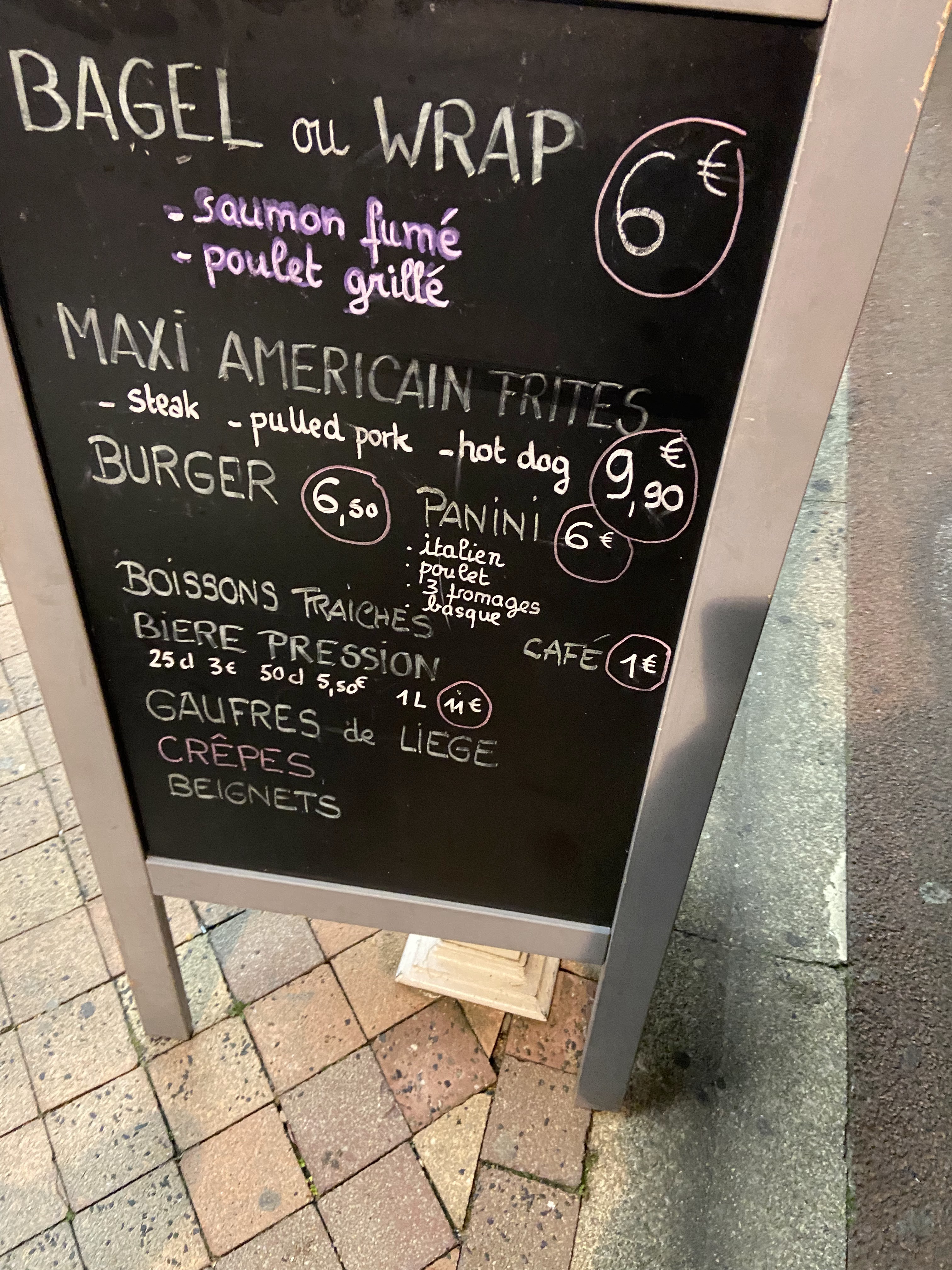Bonjour les gaufres sont assez chères. 4 € jusqu'à 6 € la gaufre nous avons commandé deux gaufres l'attente est assez longue. Le goût est différent des gaufres traditionnelles c'est une gaufre rectangulaire à laquelle il manque les coins la pâte manquait un peu de cuisson. Un accueil normal mais pas très chaleureux. Je pense que quelques améliorations seraient les bienvenus un sourire chaleureux un prix plus modéré des gaufres avec les coins. Cordialement