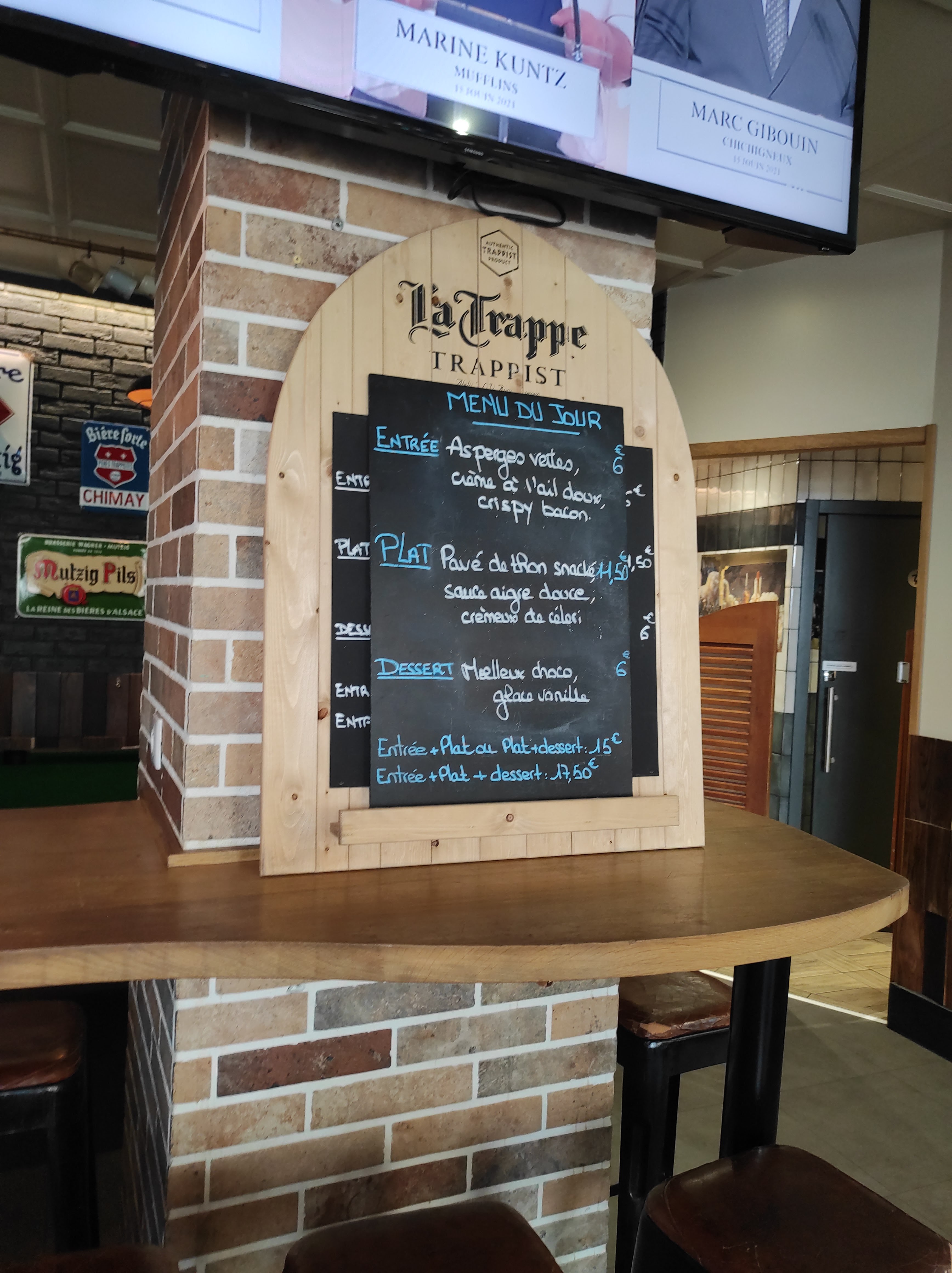 Choix de bières top mais concernant les repas c’est encore mieux !! 3 repas pris avec formule, les 3 fois ce fut super bon, rapport qualité/prix excellent nous reviendrons !!!